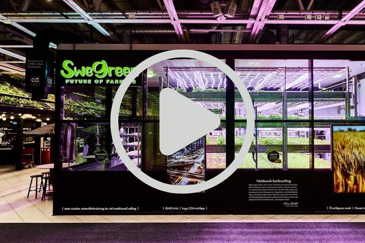 Video: In-store farms grow greens with 0 food milesIndoor system cuts water use by 99% and harvests crops straight off the supermarket shelf Climate Insider | Swegreen | Indoor Farming |